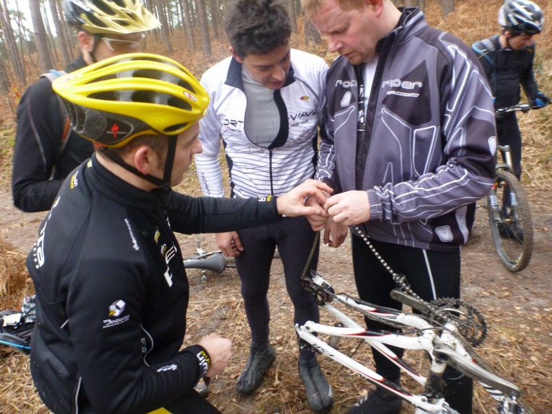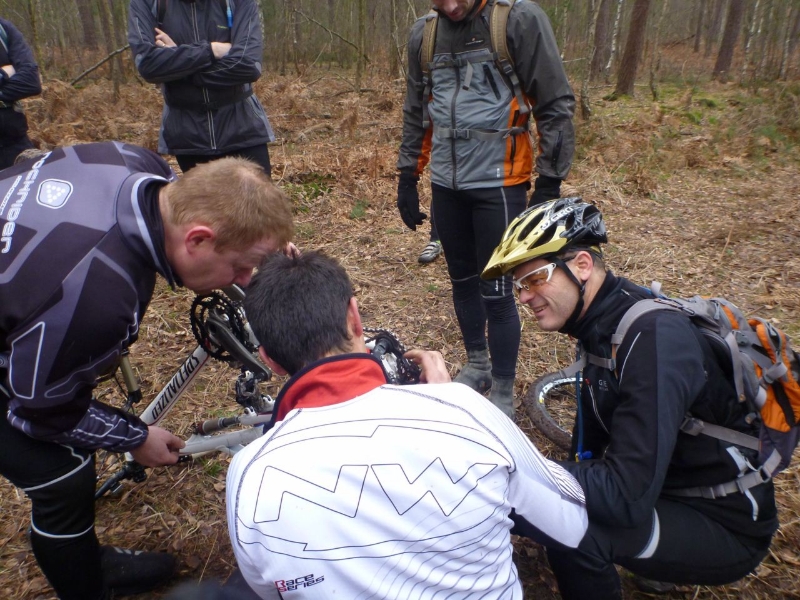 Arrivés en foret Luis prend les commandes du parcours pour faire découvrir celle ci à ceux qui ne connaissent pas et c’est parti pour les plus jolies singles du coin de bonnes cotes qui tire dans les jambes et descentes techniques dans la caillasse, tout le monde prend son pied sur ce jolie parcours à part peut être Christophe qui n’est pas en forme et aura du mal à suivre le groupe au bout d’une quinzaine de km, mais finira le parcours sans jamais ce plaindre