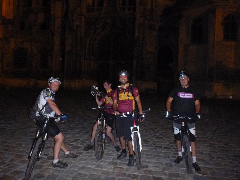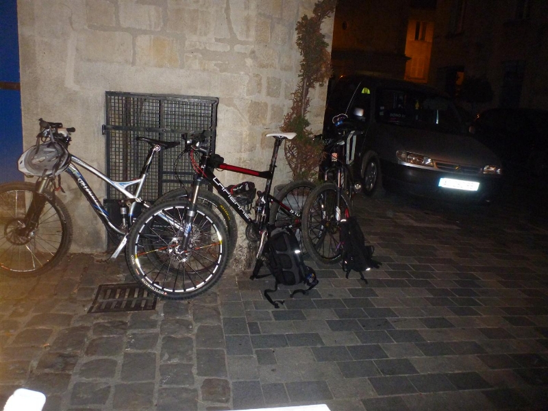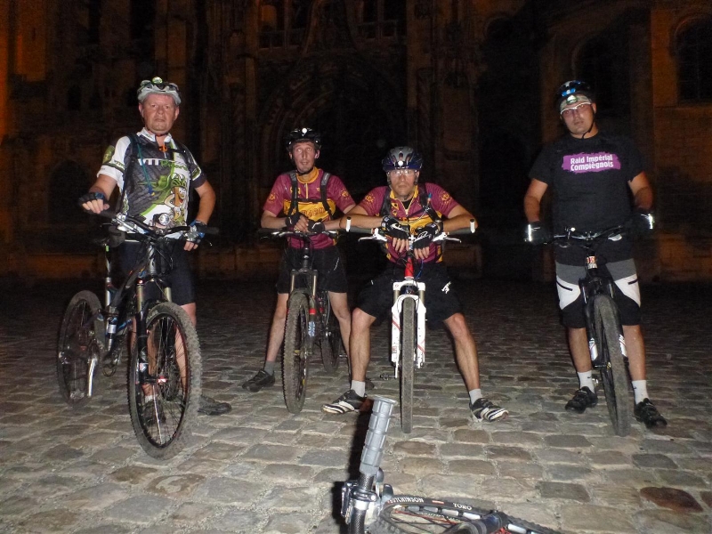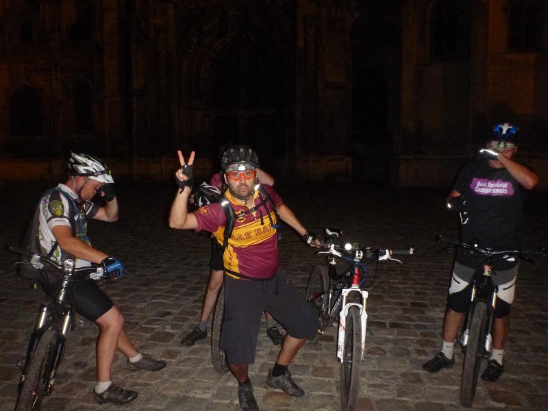 ) moi je descends bien avec un top eclairage puis la deuxieme butte se fera sur le coté mais le single qui la contourne est bien kiffant. Ensuite traversé de l’autoroute a thiers pour rentrer du coté de la butte au gendarme pour essayer de trouver un chemin qui nous emmenes a senlis (on ne traine pas souvent par la du coup on a regardé 2 fois le gps en se faisant attaqué par les moustiques et autres mouches). avec fred, on verra une biche sur le chemin mais qui partira vite fait quand elle a vu notre troupeau. On arrive enfin à senlis, deja 22h50, visite de la ville et de ses paves puis pause dans un pub, ou ludo et david payeront leur tournée pour leur birthday