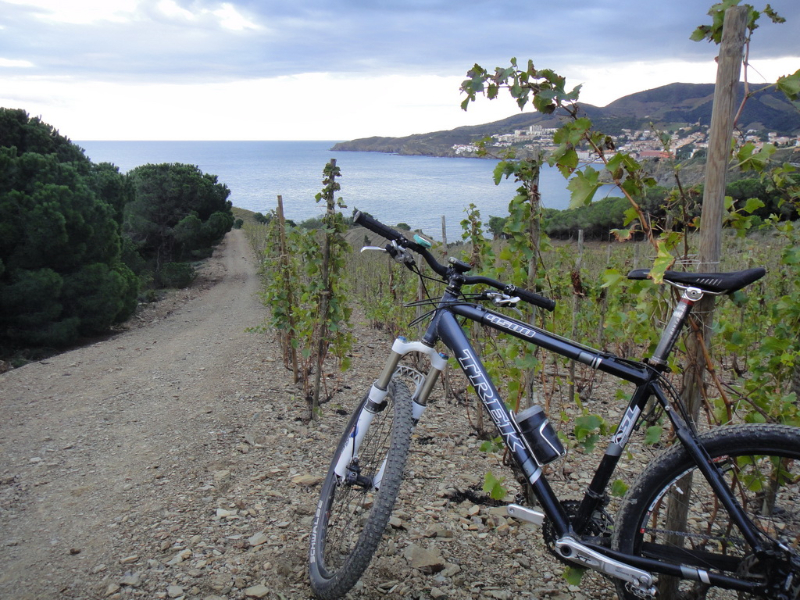 Après la semaine désastreuse coté météo dans le var où l’apéro a pris le pas sur le vélo, nous voici dans les Pyrénées orientales et plus précisément à Banyuls. Là, la météo est au top, pour dire en ce moment j’écris ce CR dehors au soleil et en tee shirt, alors évidement le Vtt est enfin de sortie ainsi que la tenue été.
