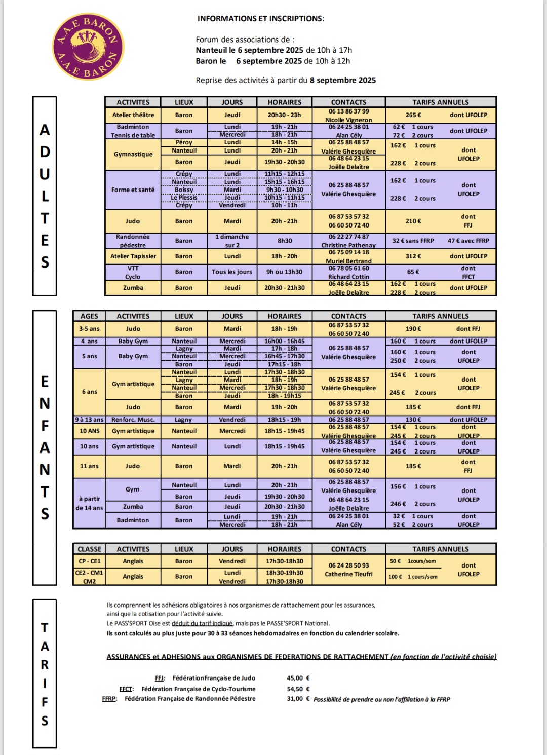 Son rayonnement dépasse largement la commune de Baron puisqu’elle compte plus de 350 adhérents , adultes ou enfants, répartis sur 37 communes du Valois et de Seine-et-Marne.