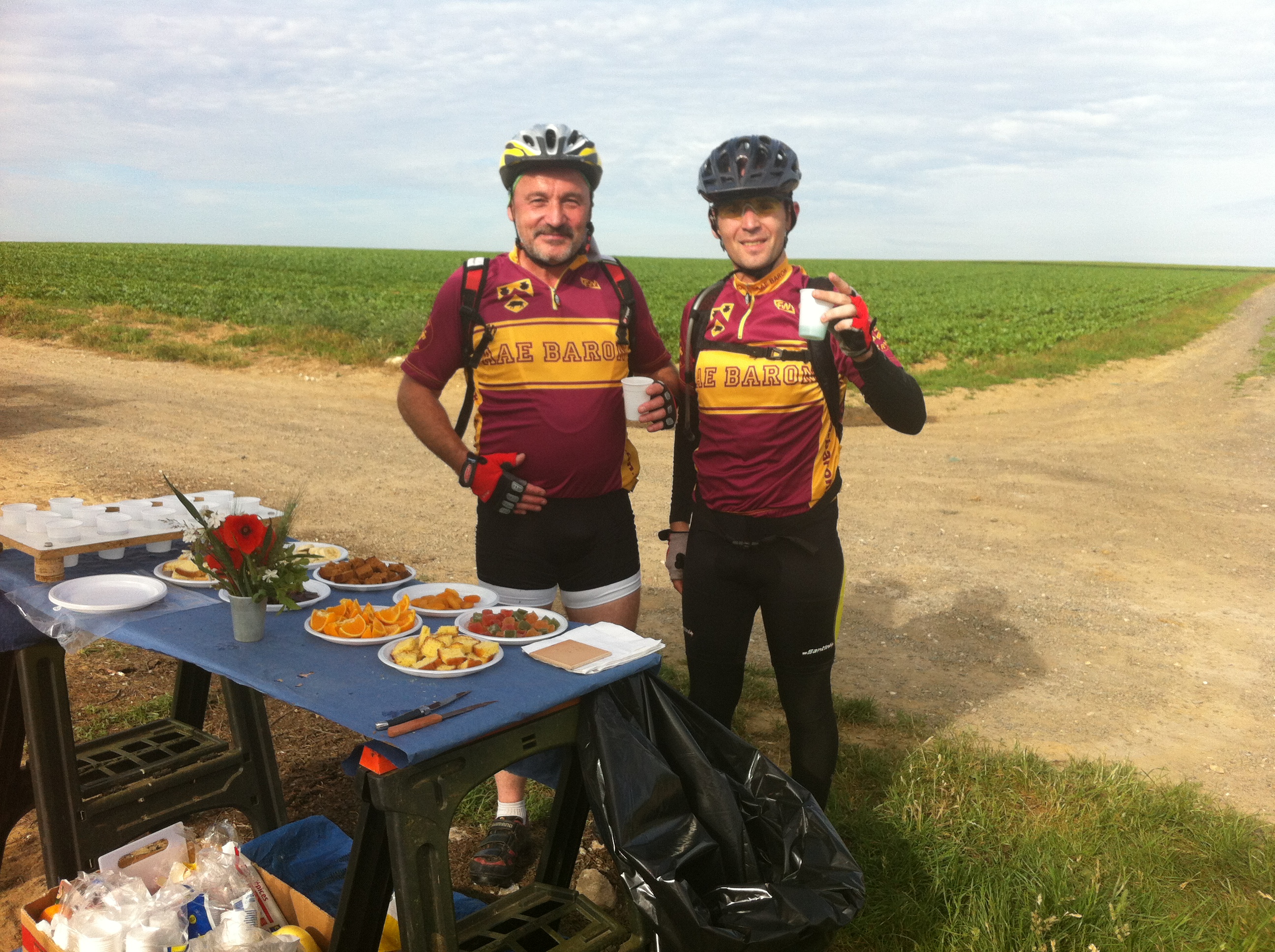 Dernier ravito après un faux plat long mais super roulant!!! Nous commençons à nous faire rattraper par les gros rouleurs, Philippe et moi même commençons à fatiguer (Crampe cuisse droite) Meme si Philippe dans les descentes appuie fort
