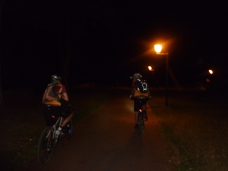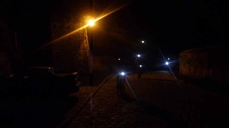 Vers 21h15 on allume les frontales et les lampes du guidon, et c’est parti pour l’aventure ! Certain on même des lumières fixées sur les rayons, ce qui donne le plus bel effet visuel.