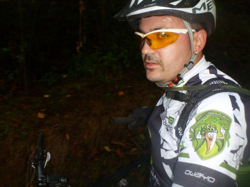 et la quel kiffe suprême, une superbe descente, avec des marches de la caillasse, de la racine, du petit ruisseau, bref je prend un pied énorme. Seul eric me suit (il a du regretter le titus sur celle ci) petite chute flippante du papy sur les pierres mais ouf plus de peur que de mal. ritchie et david, arriveront à pied, mais la moindre erreur peut faire très mal. La fin de la descente arrive sur la route puis 500m et on est au gite avec une banane énorme