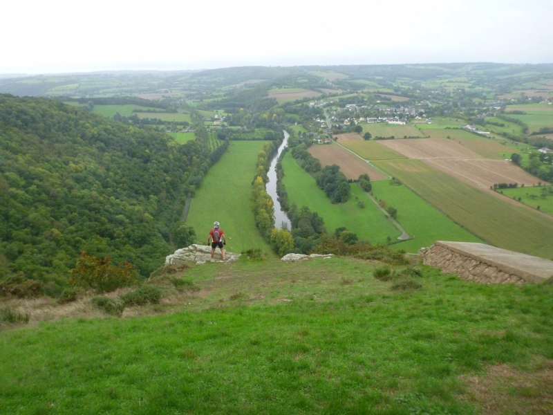 ). Nous continuons mais on perd la trace, plus de flèche, on va au village le plus pres, qu’on voit dans la butte en face. On arrive bingo c’est dans ce village qu’on doit passer, par contre on trouve des flèches mais pas les nôtres. Avec eric on décide d’y aller à l’instinct mais on ne veut surtout pas louper un point de vue. Bingo on tombe dessus, le pain de sucre (on enchaîne samba, caipirinha, ….non je me réveille) qui est le départ des parapentistes du coin. et la wouah magnifique et ça donne le vertige, on voit notre gite au loin. quelques photos plus tard direction la dernière descente de ce trip, la noir