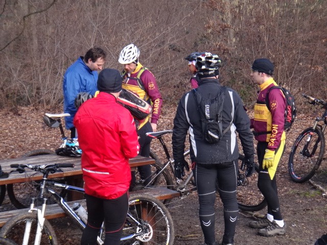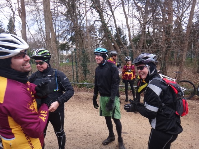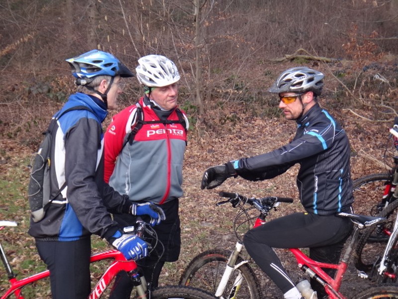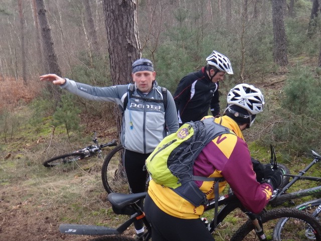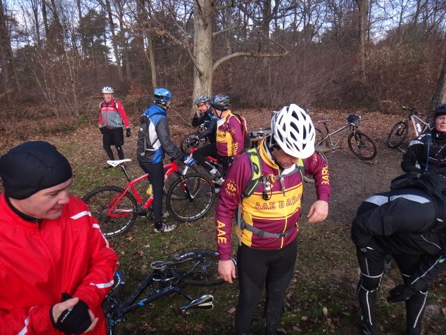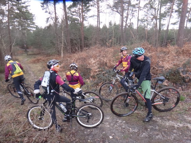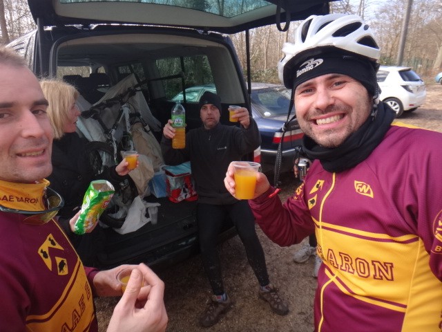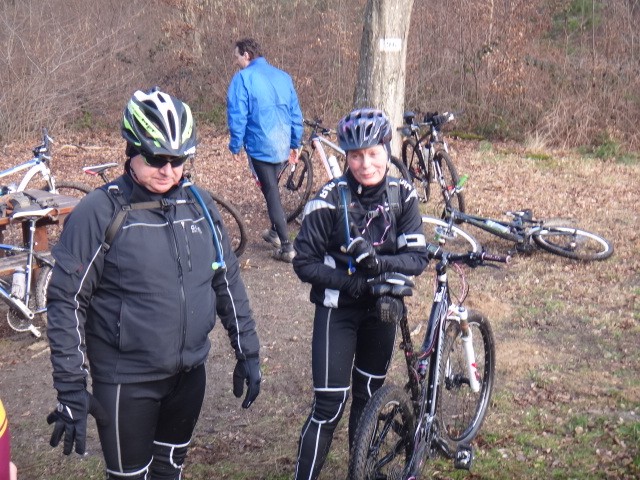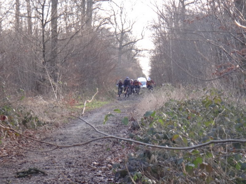 Nous voila parti, pour une bonne balade en forêt, sable super, soleil présent a certain moment, même éblouissant, Didier nous ouvre les chemins sa roule bien en fil indienne et on n’est pas mal quand même. Passage par la Baraque Chaalis et la on retrouve Zorg avec un poto a lui, sa discute et on repart tous ensemble direction la butte aux gendarmes, nous croisons François et un poto, qui rejoint notre groupe et sur le chemin Philipe nous quitte pour un rendez-vous avec madame, (bien mangé Philippe). François perd un bout de pédale, mais sa roule. Nous montons la butte, et une fois en haut, Didier nous dit on la monte deux fois, tous le monde suit donc c’est parti, deuxième arrivée en haut , il nous manque Patrick et Mumu. A les voila!! Patrick a fait un passage par l’avant, la souche était trop forte. On remarque qu’il a perdu son compteur, on file vite fait le récupérer et nous voila tous réuni pour repartir sur le retour.