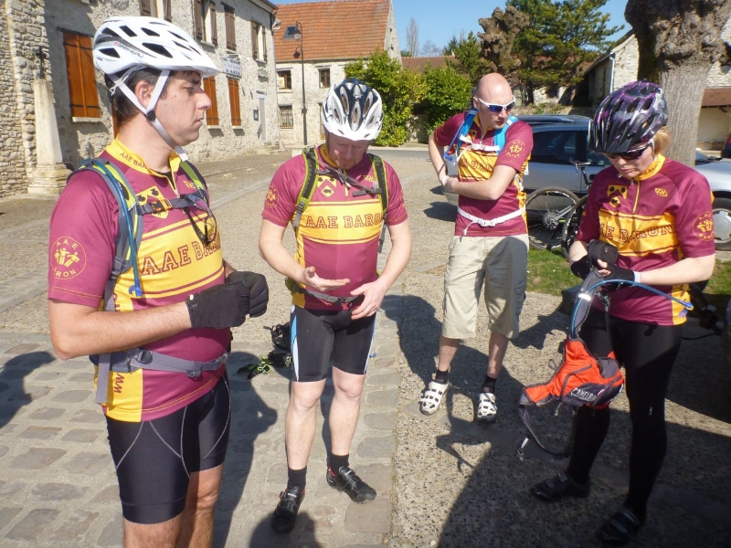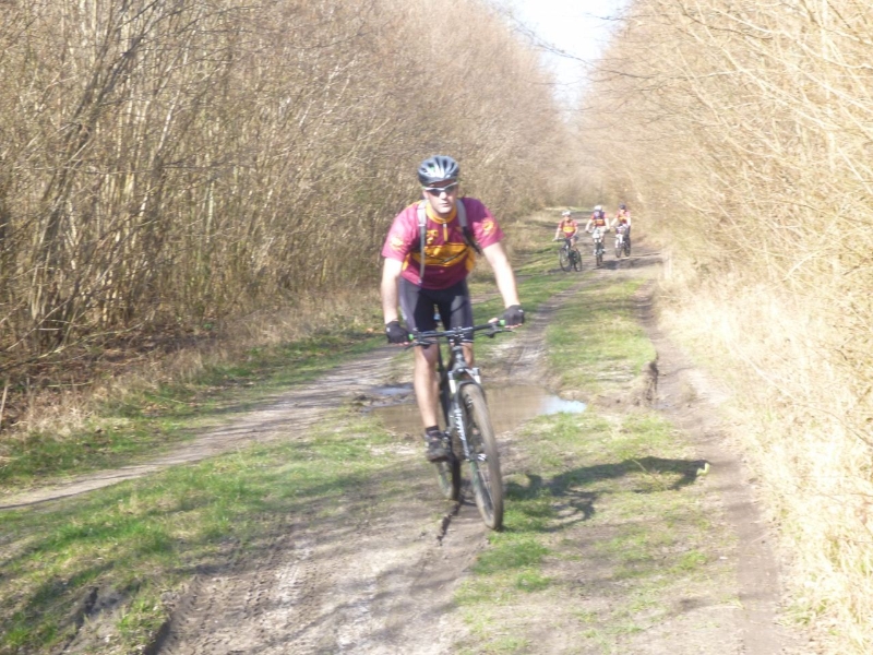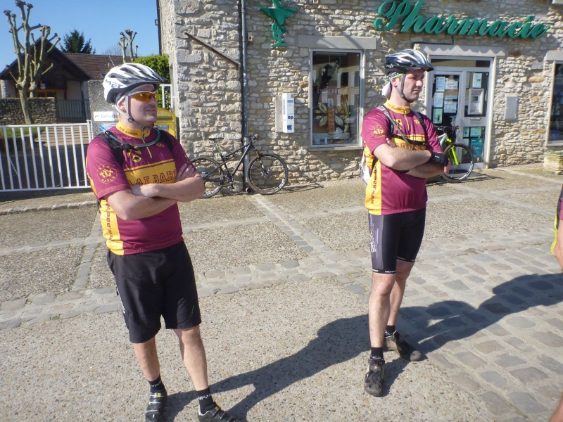 Vu qu’il y avait fiesta pour moi hier soir, j’avais proposé un depart à 13h30 et bizarrement tout le monde a accepté, besoin de grasse mat necessaire pour pas mal de personnes  Laughing et quel bonheur de rouler en short et manche courte, que le soleil nous chauffe la peau bref une apres midi de reve, le terrain est en plus assez sec (enfin quelques flaques subsistent  Laughing n’est ce pas mumu) le parcours je n’en parlerais pas trop :)bah oui surprise pour le 4 mai. Donc accompagné de richard, didier L, Micka, david mumu, julius et moi même, fredo nous rejoindra plus tard, c’est partie pour les verifs de parcours, du futur flechage tout en deconnant, papotant. Tout allez bien jusqu’à la fin ou l’ami david deviendra boulet du jour et souffre douleur de nos moqueries :)une crevaison, jusque la rien d’exceptionnel, ça arrive, mais quand il demonte, on voit deja 2 rustines au meme endroit sur la chambre et la crevaison vient de la  scratch  bah t’as pas vérifié s’il n’y avait pas une epine, effectivement en passant la main à l’interieur on ne sent rien, mais en regardant le pneu de l’exterieur, on remarque un petit morceau de silex present et qui ne depasse à l’interieur que lorsqu’on appuye  Laughing  crevaison réparé, on continue, apres 200 m on teste une cote un peu difficile et la c’est le corps de cassette qui rend l’ame pour david  mortderire  bon bah il se fait deja tard, du coup on rentre sur le plessis avec fredo, micka et david laissant les autres aller faire leur gouter a baron avec des victuailles apportés par mumu et julien (bizutage oblige)