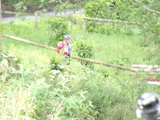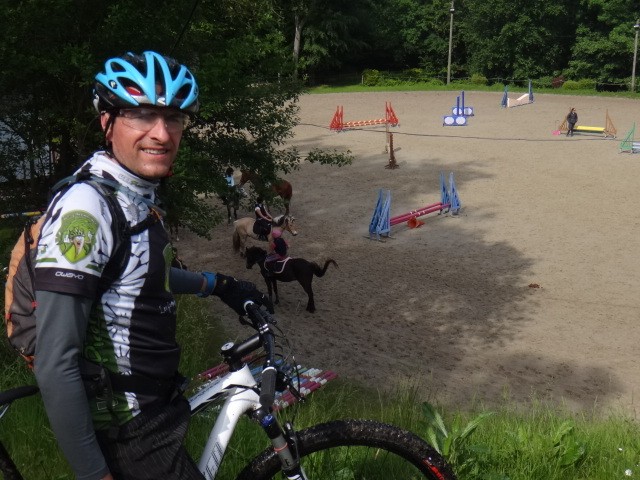 On se dit que l’on passera par le centre équestre pour voir la fille de Fred qui a son cours, mais voila Papy crève, ou recrève et la on est juste a coté d’une mine bien odorante, réparation faite nous repartons. On croise une bande de marcheur et au bout de 1 km, mais deux compères se rendent compte qu’il se son plantés. Demi tour et nous voila repartI, tiens les marcheurs, Papy leur dit quelques mots en roulant, mais la j’ai pas suivit.