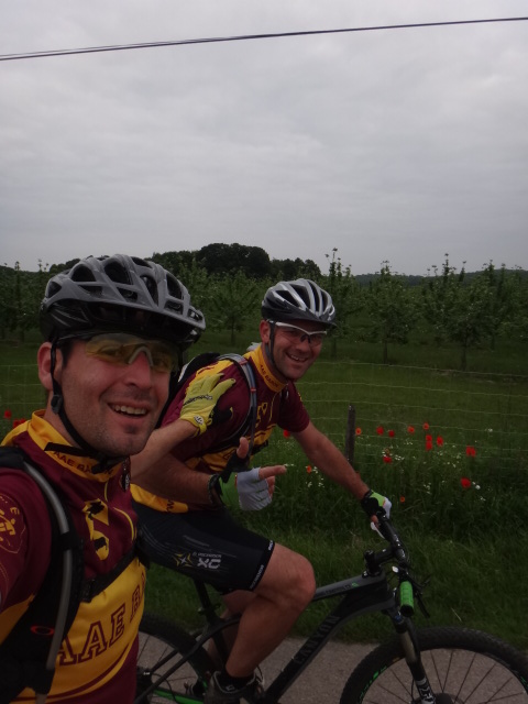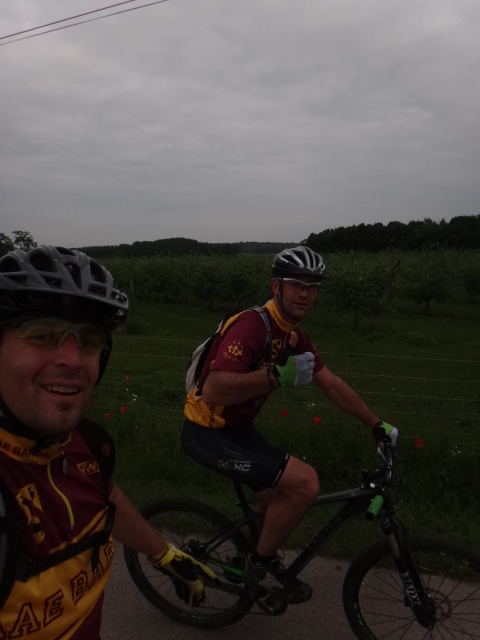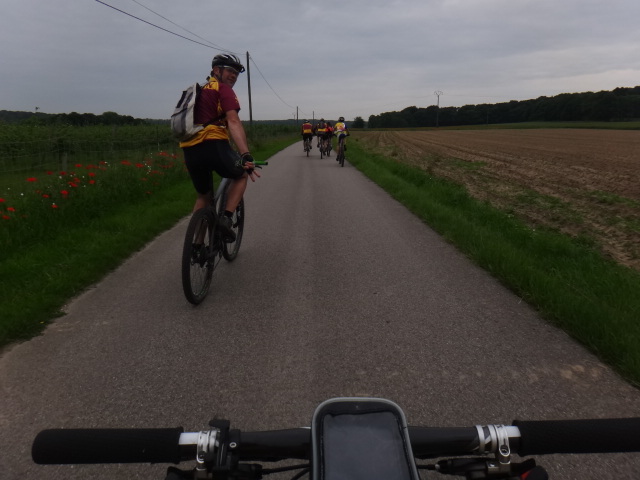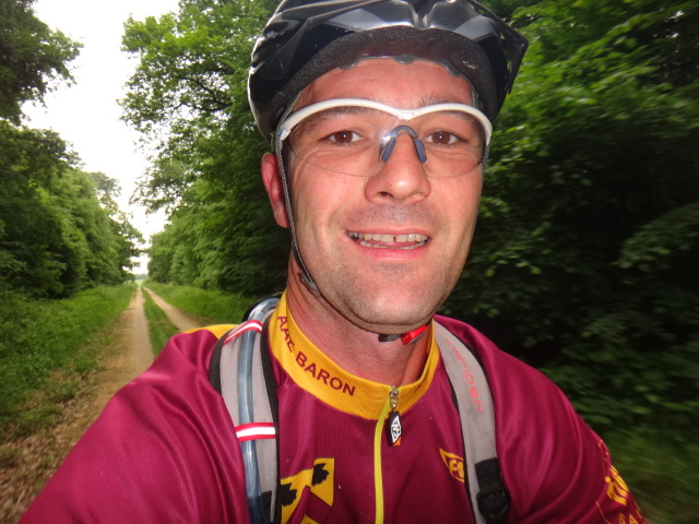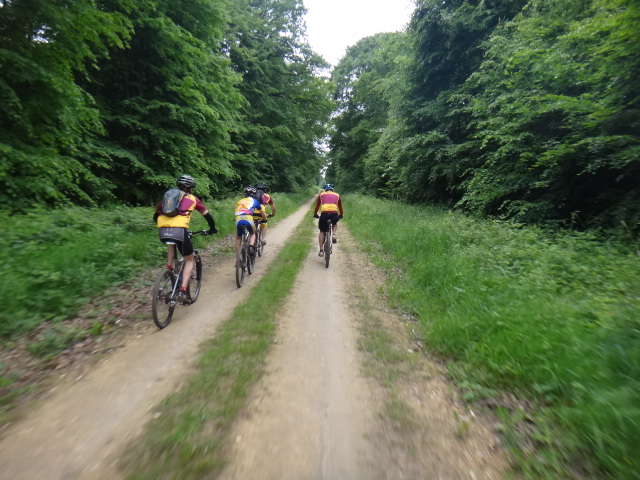 Nous rechargeons les batteries en vivre et repartons vers le single des lacs derrière Ermenonville, puis sur Baron sur des petits singles, çà grimpe, cool, je tire la bourre avec Fred… Puis nous revenons par Droizelle, çà commence à piquer dans les jambes, Mika m’attaque
