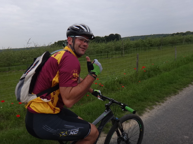 ) me voici à la deuxième randonnée à Auger St Vincent. Super content car habitant au bled d’à côté je pars donc pour 8h retrouver Ludo77 et Junior , Sayern, et Fred. Arrivée sur Place, Crépy est là en Force, nous voyons aussi un vtt Picard Higgins60. Petit papotage, café prise de Dossard, 3Euros l’inscription