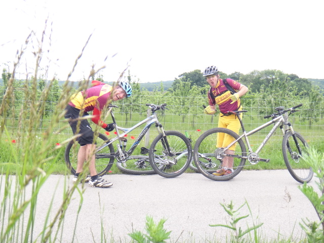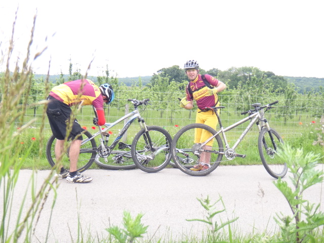 . Ludo veut lui aussi etre dans la partie et change son velo (enfin celui du président) avec Fred!! Ah les joies du 29er sont impénétrables