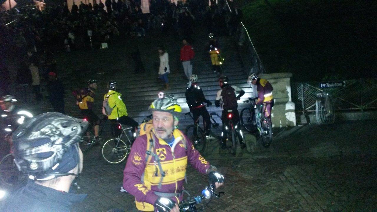 Puis le groupe continu à dériver tranquilement en oubliant pour certain que le code de la route stipule que normalement on s’arrete au feu rouge