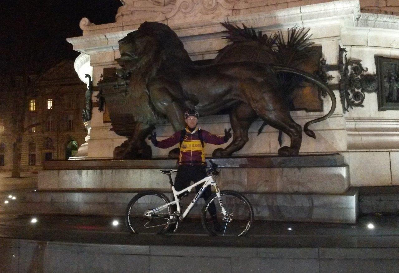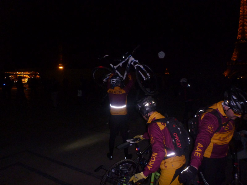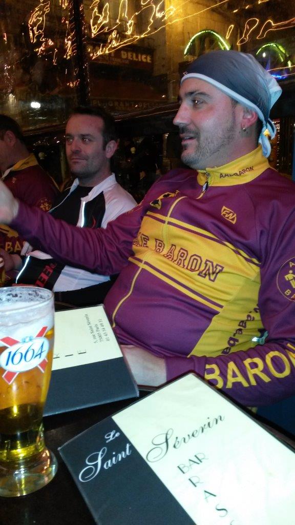 et pour le reste de la bande une sceance de portage en règle mais au moins on sera tous en vie !Après se moment de franche rigolade, commence à faire sérieusement faim alors en route vers république puis Saint Michel pour échouer le troupeau de vélo le long de la Sorbone ou nous nous restaurons dans un établissement sans prétention mais correct!
