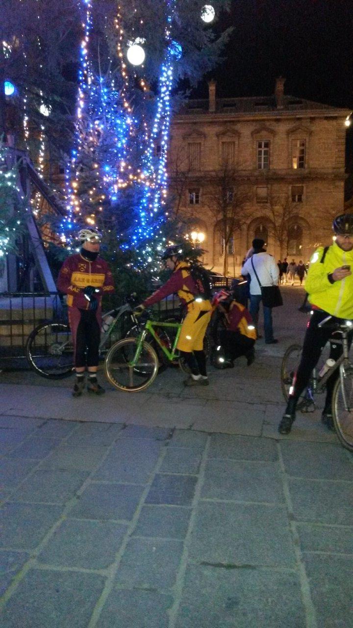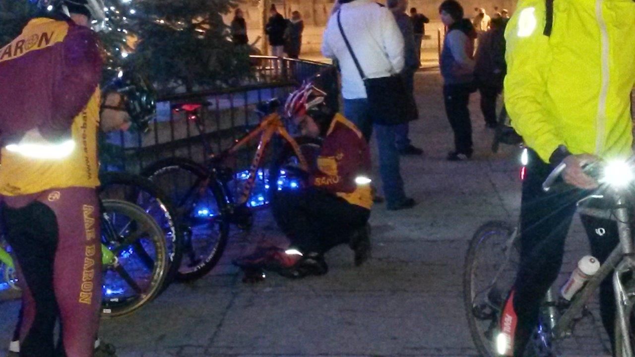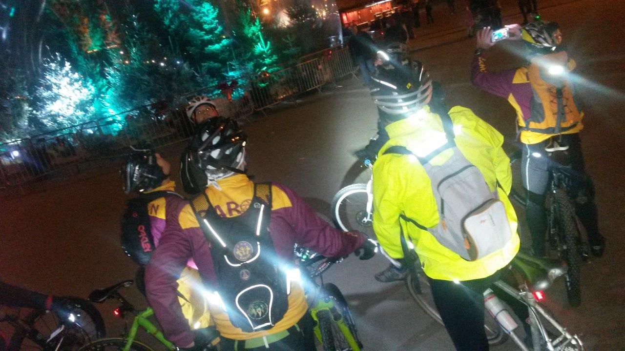 Nous ferons le tour des équipements pour que l’on soit tous bien visible et la dans le lot nous avons notre arbre de noel nommé Filipe avec un Niner entouré d’une girlande lumineuse bricolé autour du carde et des lucioles dans les roues!