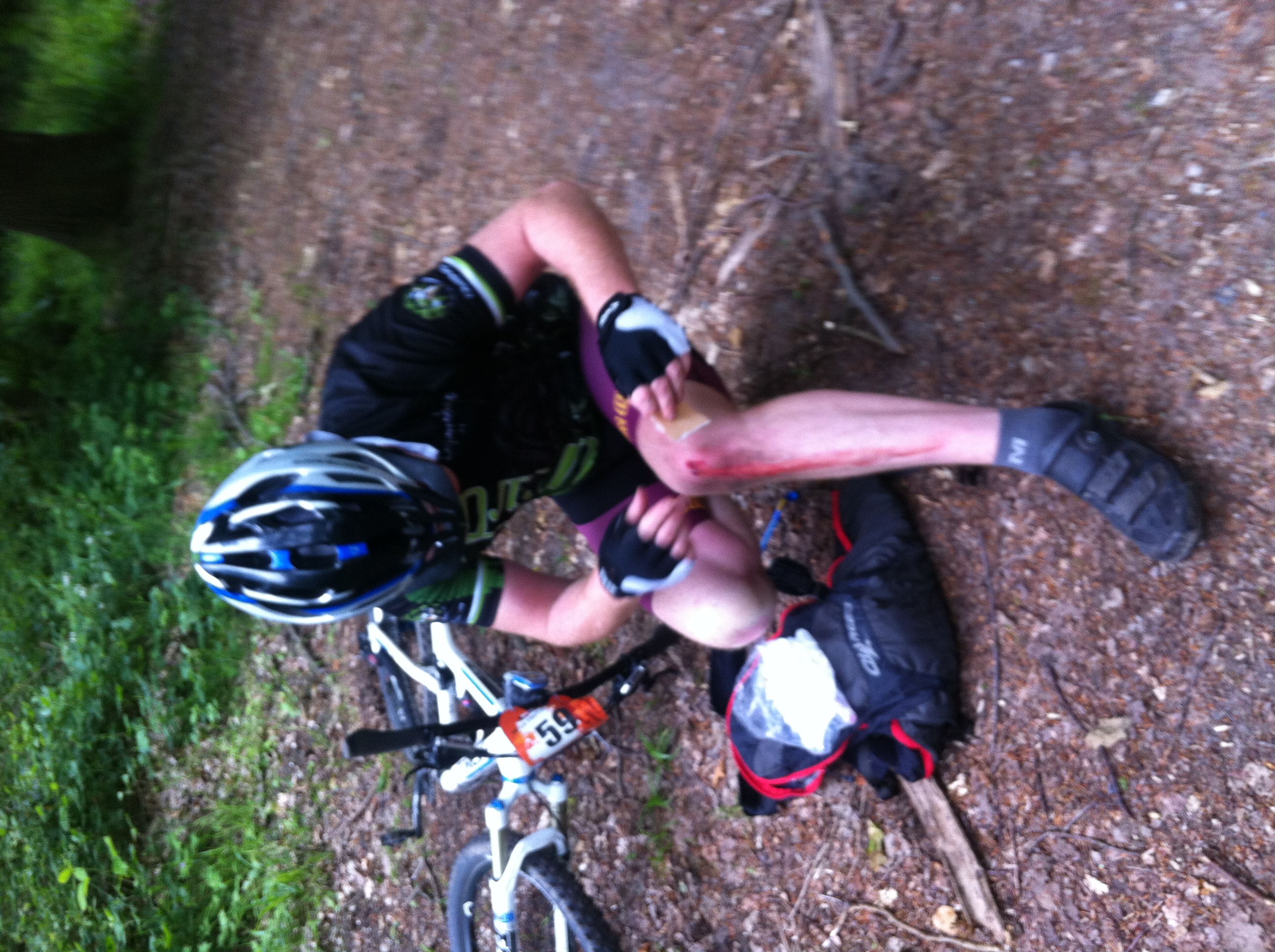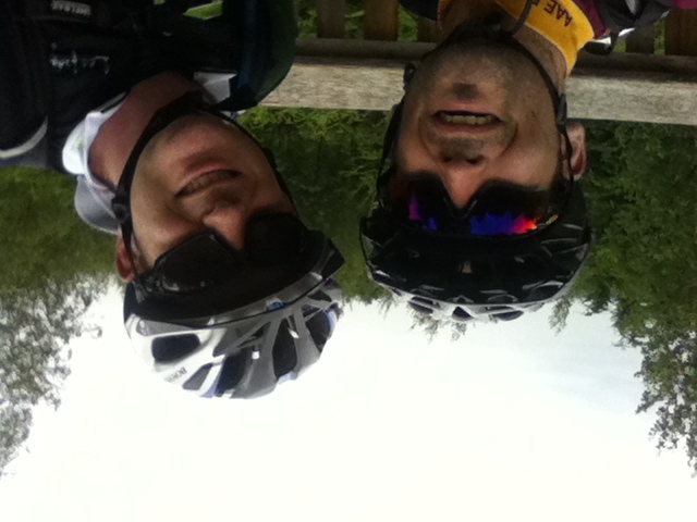 Arrivés en haut c’est clair y a de la vue mais y a aussi des arbres qui cache la vue. Puis, notre parcours arrive à sa fin, Ceva est plus agile que moi, ouvre la voie. Nous finirons par une super descente technique dans le Bike-Park,avec plein de jump sauf qu’un tremplin piègeux le mettra à terre. Un tremplin avait un trou derrière et évidemment Ceva fera un bel OTB. Pas de gros bobo, mais assez pour mettre la plaie sous pansement.