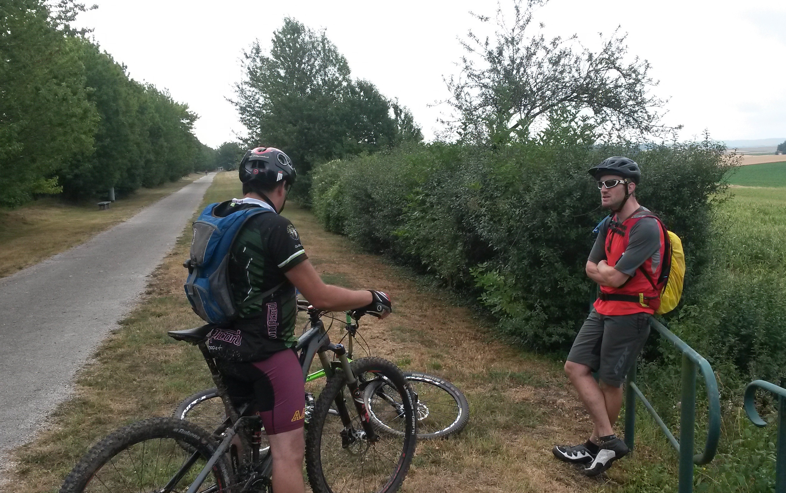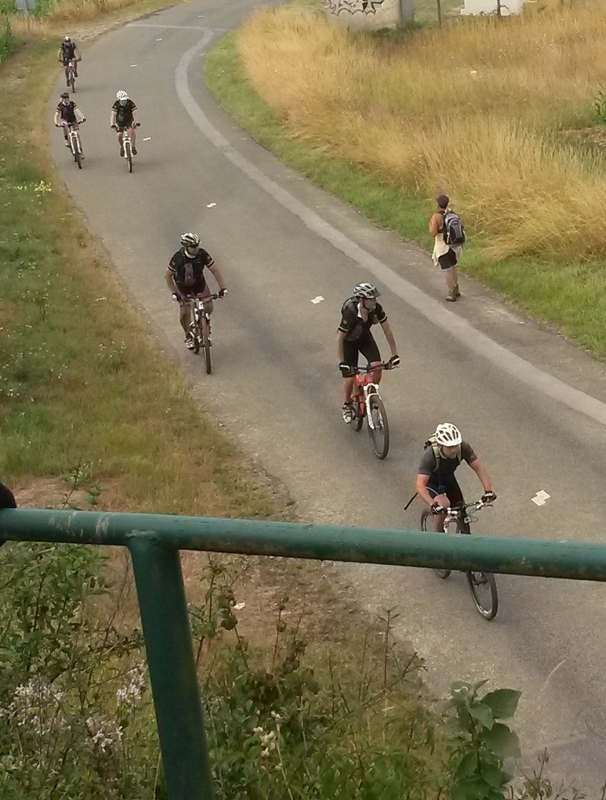 Nous repartirons en groupe avec encore beaucoup de passage entre les champs ce qui gache un peu les parties en sous bois bien agréable dont une belle descente ou avec King, Kuc, Kevin on s’emballera et on manquera de louper une flèche mais de notre faute on avait décidé autrement au vu d’une belle marche pour un tit jump sympa