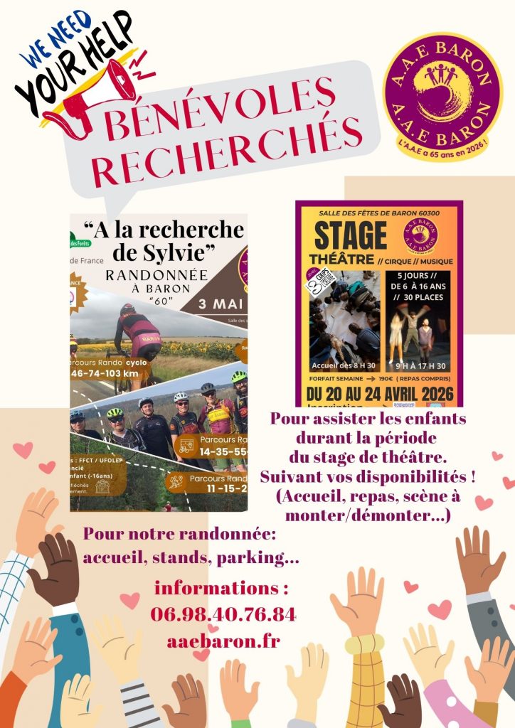 Plus d information au 06.98.40.76.84 ( Michaël ) ou via l-email de l’aaebaron@outlook.fr