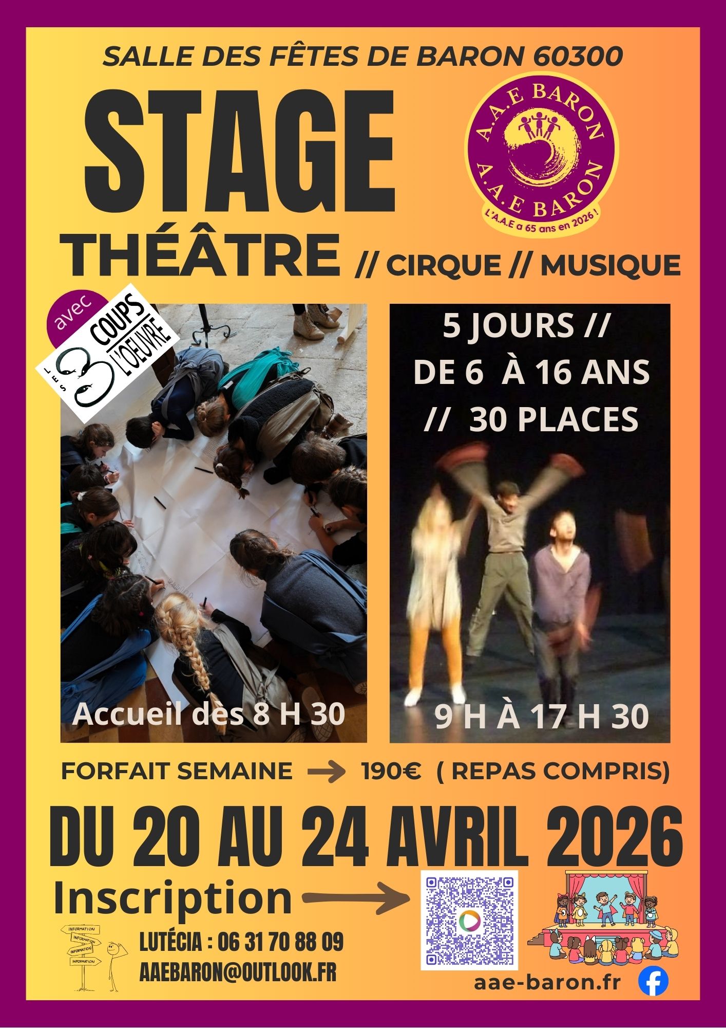 STAGE Théâtre enfants du 20 au 24 avril 2026.